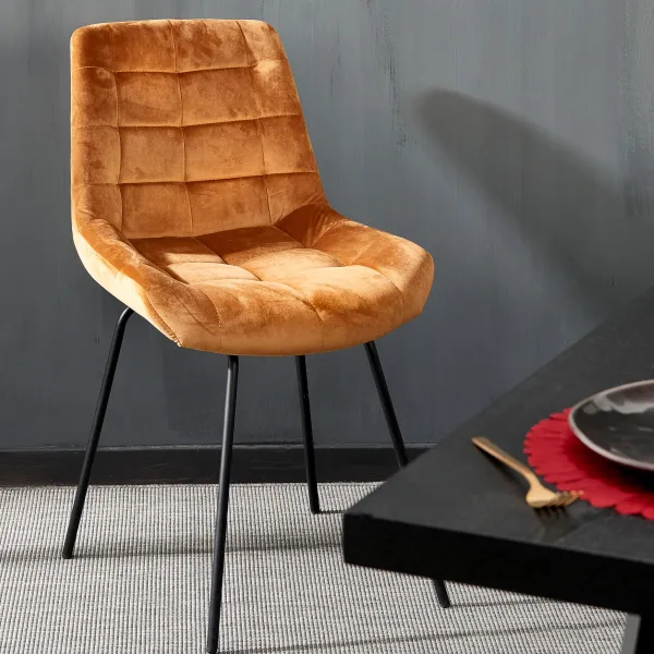 - Capa: Poliéster, Veludo, Enchimento: Espuma Poliuretano, Pernas: Metal